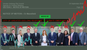 For: Sarah Mansfield, Jim Mason, Peter Murrihy, Pat Murnane, Bruce Harwood Against: Stephanie Asher, Kylie Grzybek, Eddy Kontelj, Ron Nelson, Anthony Aitken, Trent Sullivan Watch the video recording of the meeting here 200 people from all walks of life and all ages in the Geelong community had come to witness their Councillors’ discussion about whether or not to declare … Continue reading “It was a vote against humanity”